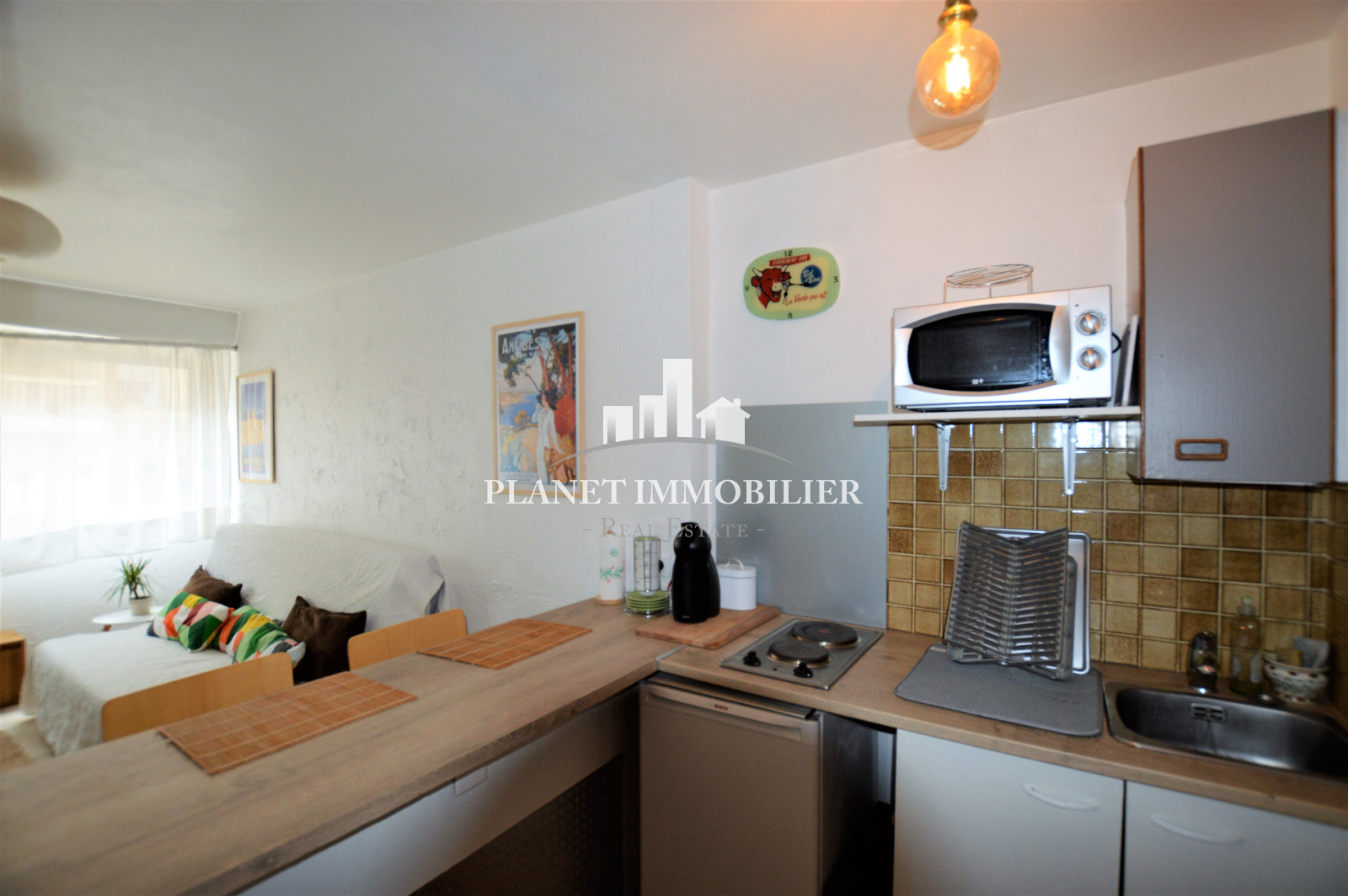 Antibes (06600)LOCATION Antibes centre secteur Albert 1° Libre à partir de Début Décembre, 5 minutes à pied du centre-ville et de toutes commodités, à 2 minutes du bord de mer et des plages de sable d'Antibes. Studio meublé de 20.06 m², avec salle de bain, séjour avec lit clic-clac 200cm x 160cm, frigo, micro onde grill, lave linge, cave. Honoraires agence 260 euros - dépot de garantie 1146 euros. -Dossier candidature à transmettre pour Garantie Loyer Impayée - Contact Aymeric 06 52 42 55 22 - location@planetimmobilier.com