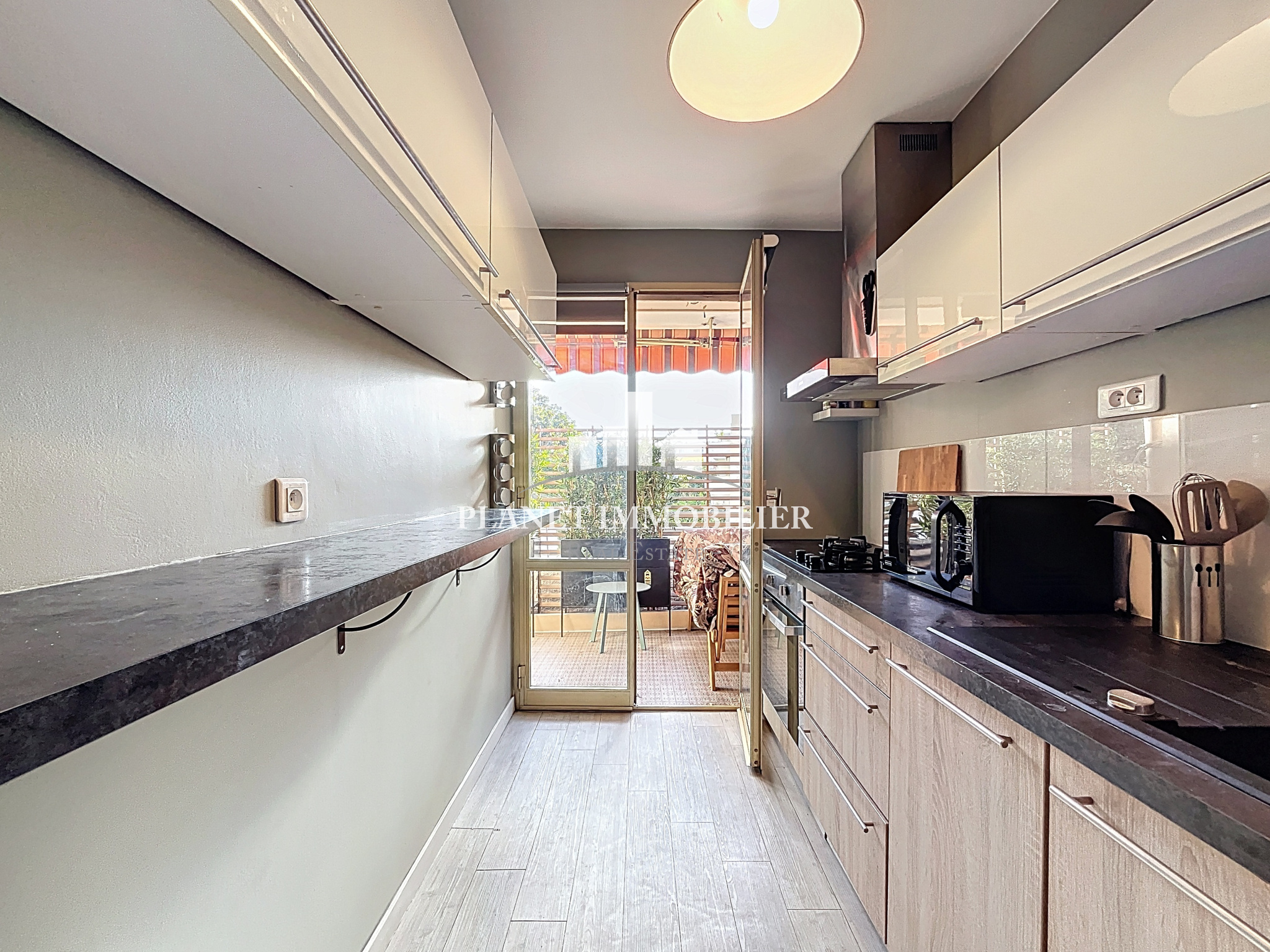 Le Cannet (06110)L'agence Planet Immobilier a le plaisir de vous proposer cet agréable appartement de 2 pièces d'une superficie de 50 m2 agrémenté d'une terrasse. Idéalement situé au coeur du Cannet, au sein d'une résidence sécurisée de bon standing, au calme, à proximité des commerces et des transports. Ce bien offre un cadre de vie paisible et confortable. Il se compose d'une agréable entrée avec dressing, d'un spacieux et lumineux séjour ouvrant sur la terrasse, ainsi que d'une cuisine indépendante, aménagée et parfaitement fonctionnelle avec son accès à la terrasse.L'espace nuit comprend une belle chambre avec placard et une grande salle de bains faisant également office de buanderie avec WC. Cet appartement séduit par ses prestations de qualités : climatisation, nombreux rangements, un garage au rez de chaussée vient compléter ce bien. A visiter sans tarder. Soumis au regime de copropriété. Charges annuelles 2272€. Honoraires compris à la charge du vendeur.