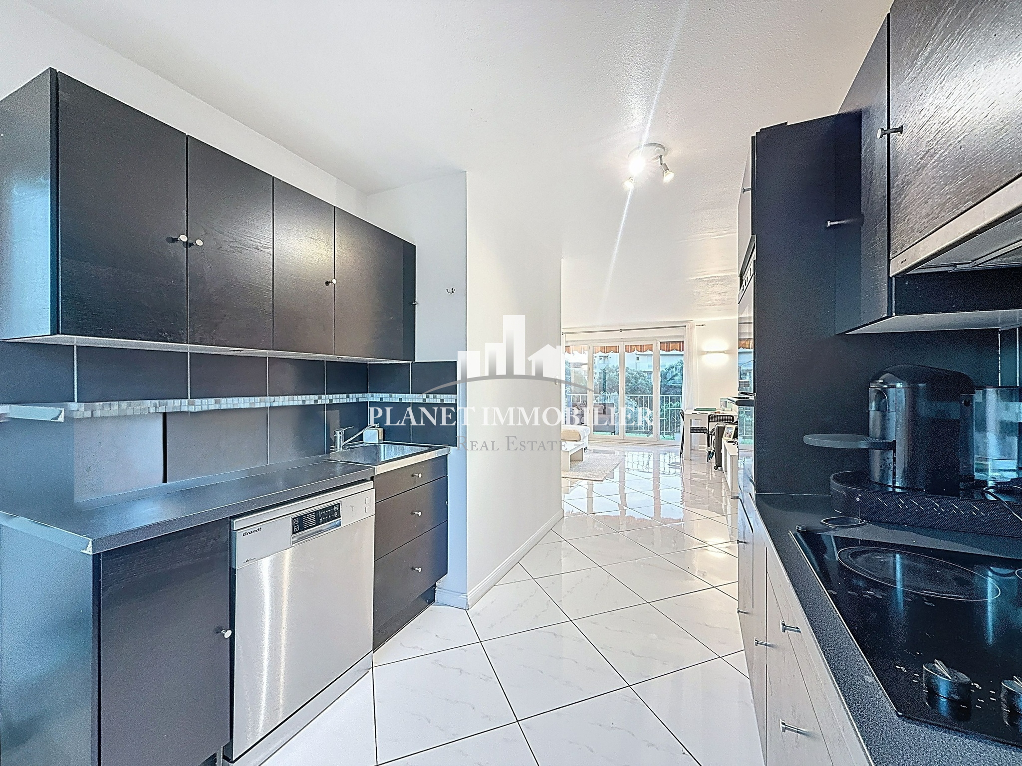 Antibes (06160)EXCLUSIVITÉ – Antibes. À deux pas des plages, des commerces et des axes routiers, découvrez ce spacieux 2 pièces de près de 57 m², idéalement situé au sein d’une résidence familiale, calme et sécurisée avec gardien. Cet appartement traversant se compose d’une agréable pièce de vie lumineuse avec cuisine semi-ouverte, d’une buanderie et d’une loggia à l’arrière. Côté nuit, vous profiterez d’une belle chambre avec dressing, d’une salle de douche avec fenêtre, ainsi que d’un WC indépendant. Une terrasse exposée plein sud, avec cellier attenant, vient compléter l’ensemble. Vous apprécierez le double vitrage, la climatisation dans le séjour et la chambre, ainsi que l’absence totale de travaux à prévoir. Un stationnement extérieur privatif complète ce bien. Soumis au régime de copropriété. Charges annuelles : 1 584 € – Copropriété avec gardien. Honoraires à la charge du vendeur.