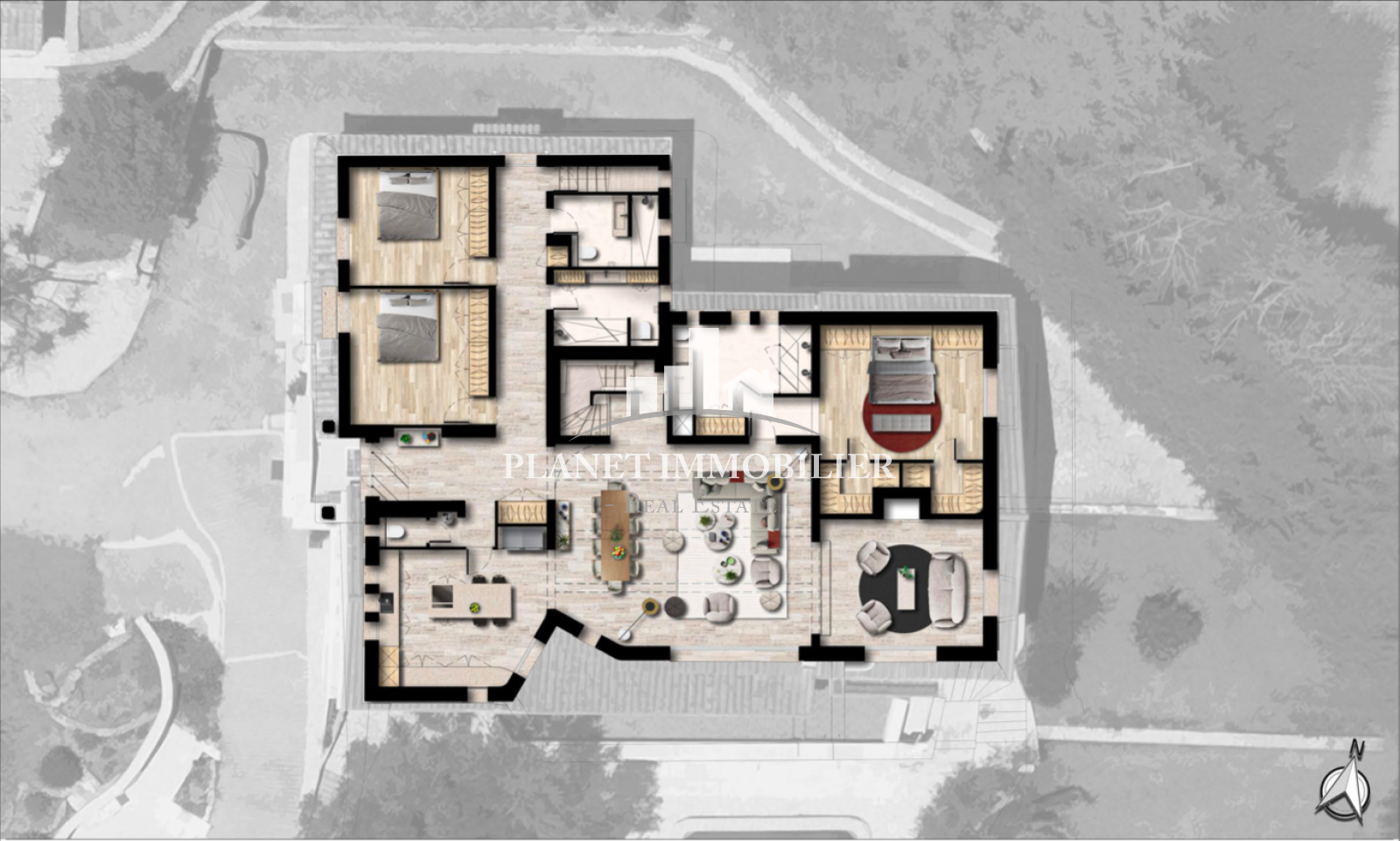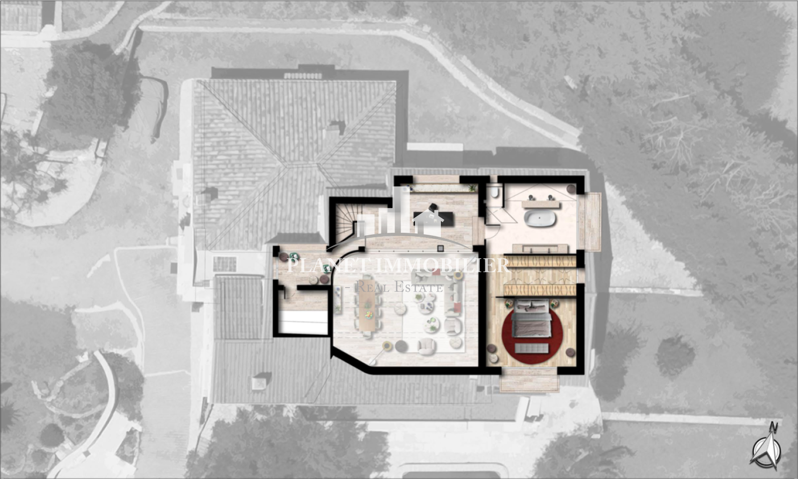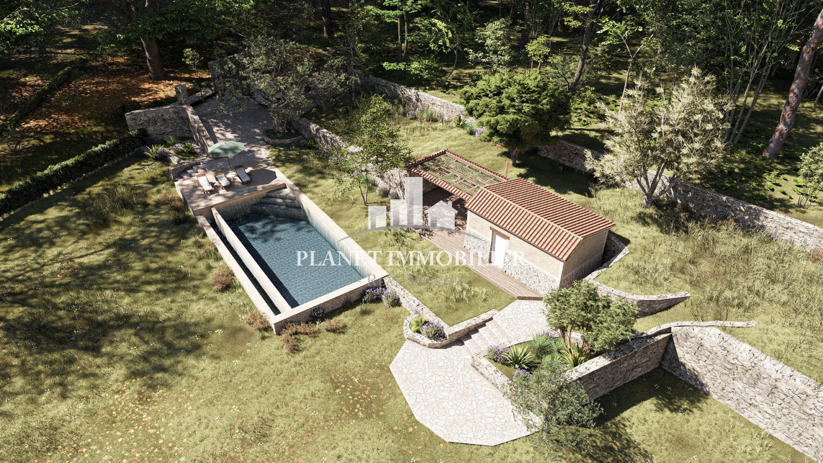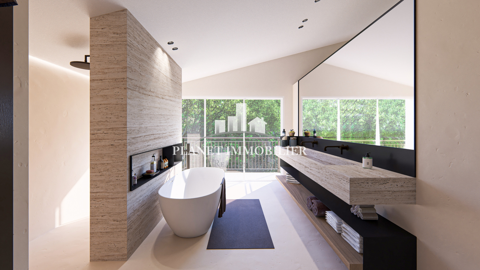 - Un jardin paysagé, des éclairages intégrés et plusieurs espaces de détente ensoleillés