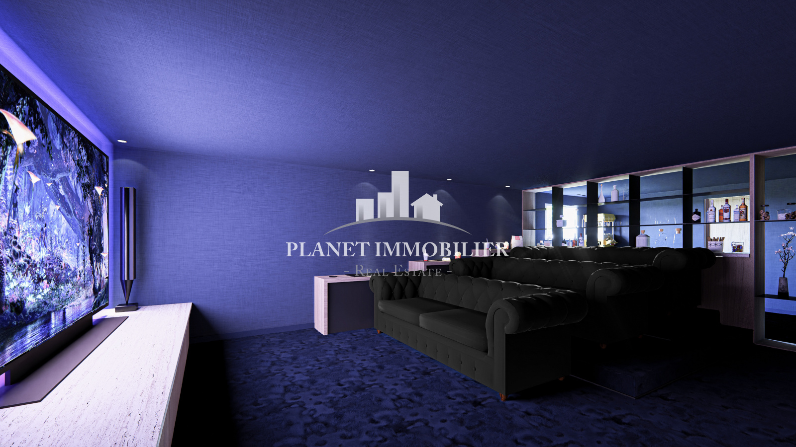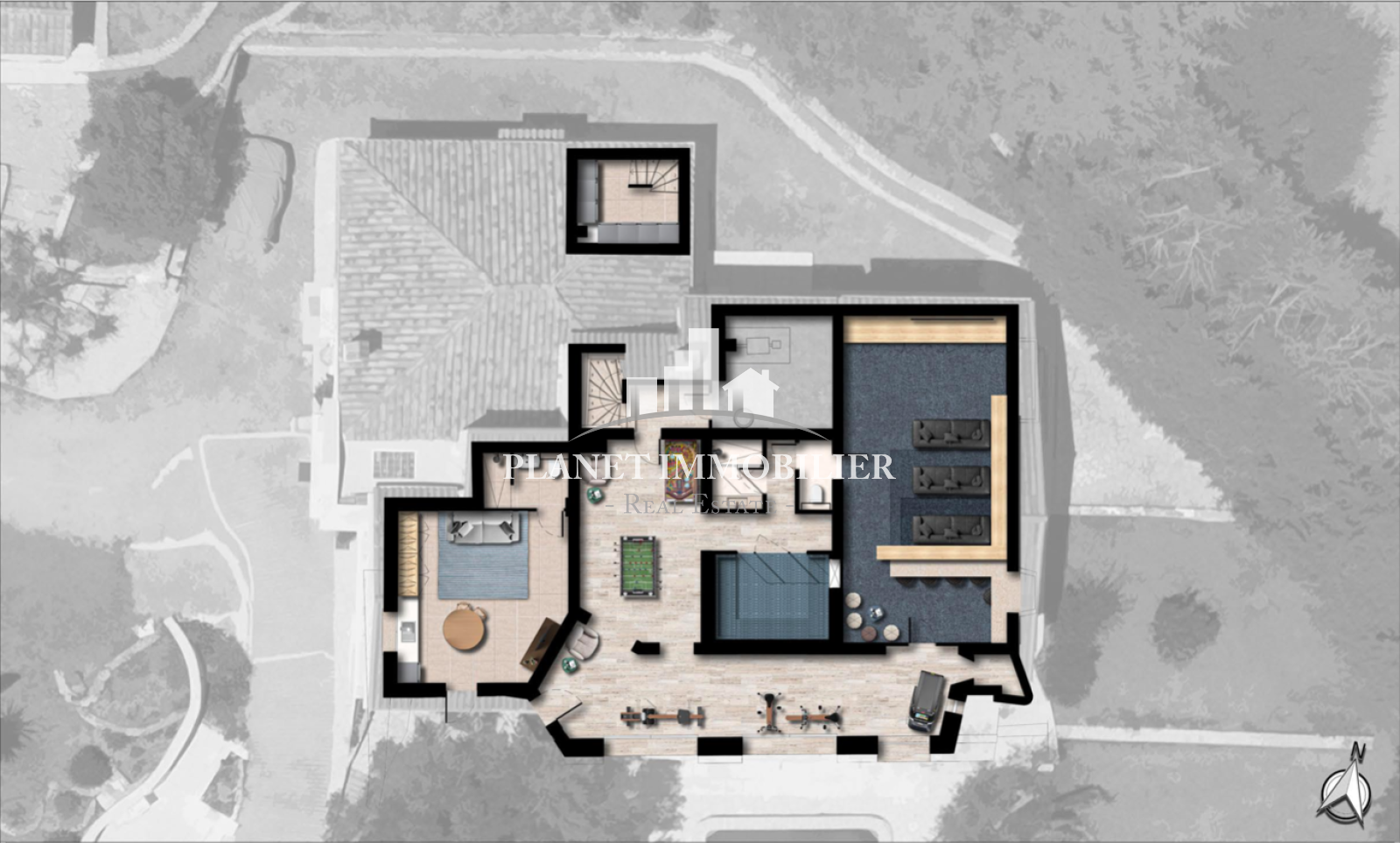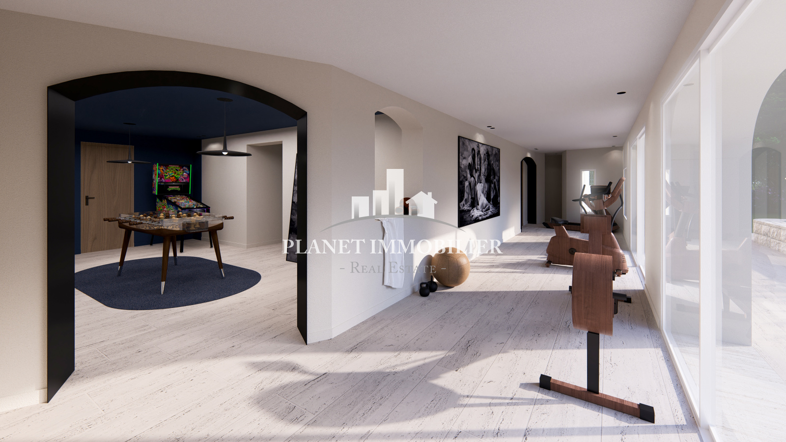 - Un espace bien-être composé d’une salle de jeux, d’un hammam avec douche, d’une salle de sport et d’un home cinéma avec bar intégré