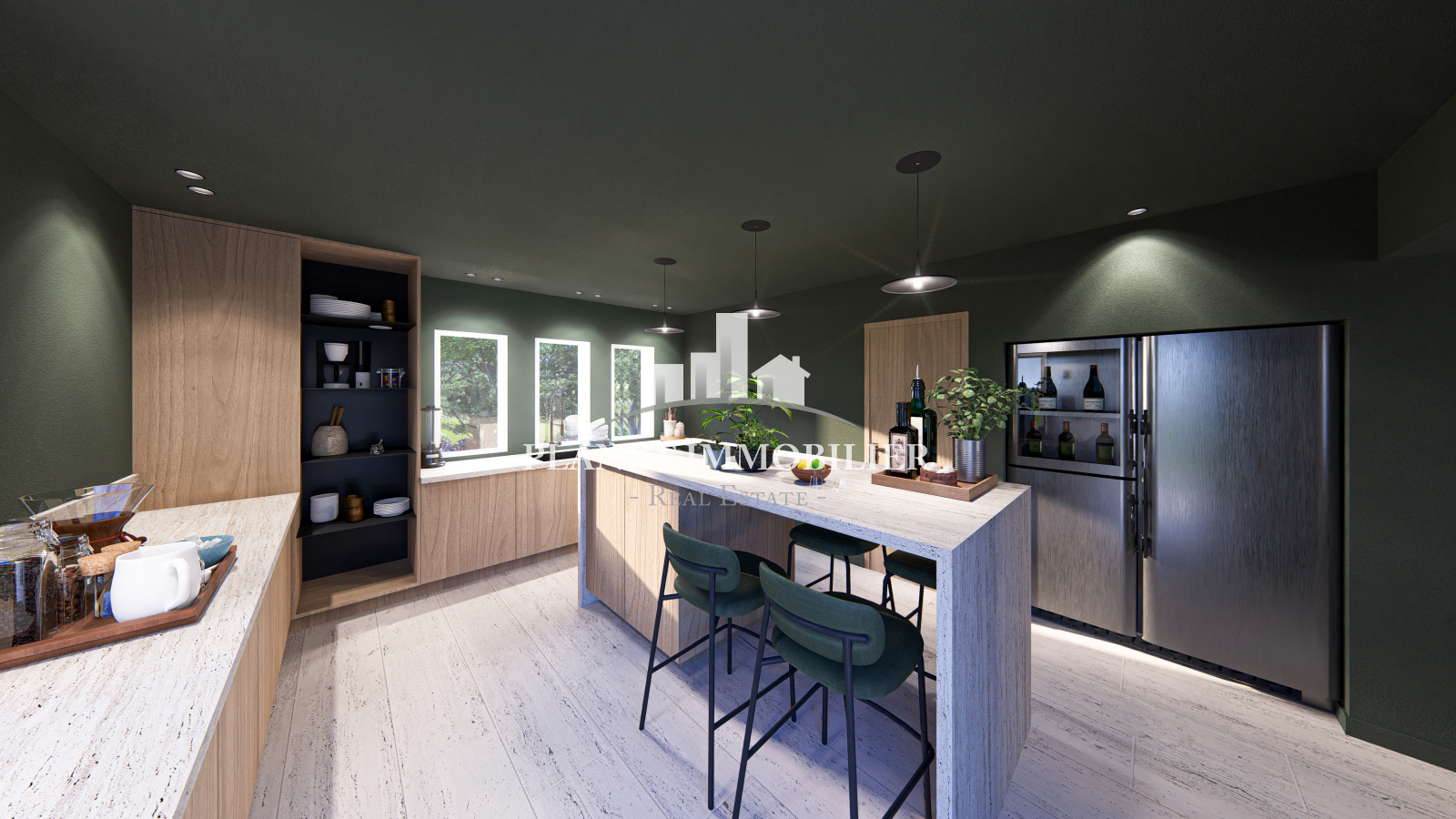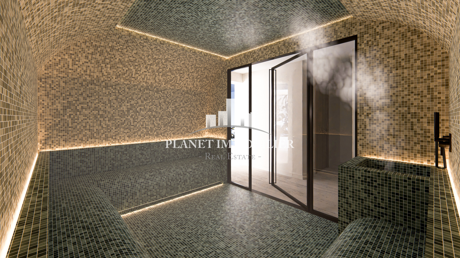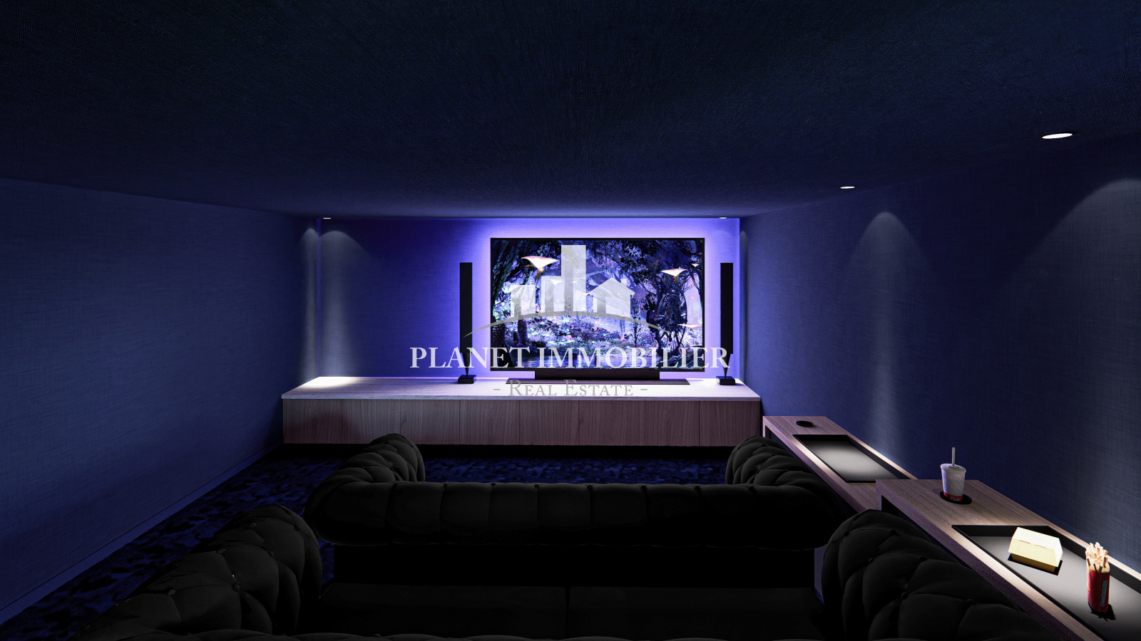 - Un espace bien-être composé d’une salle de jeux, d’un hammam avec douche, d’une salle de sport et d’un home cinéma avec bar intégré