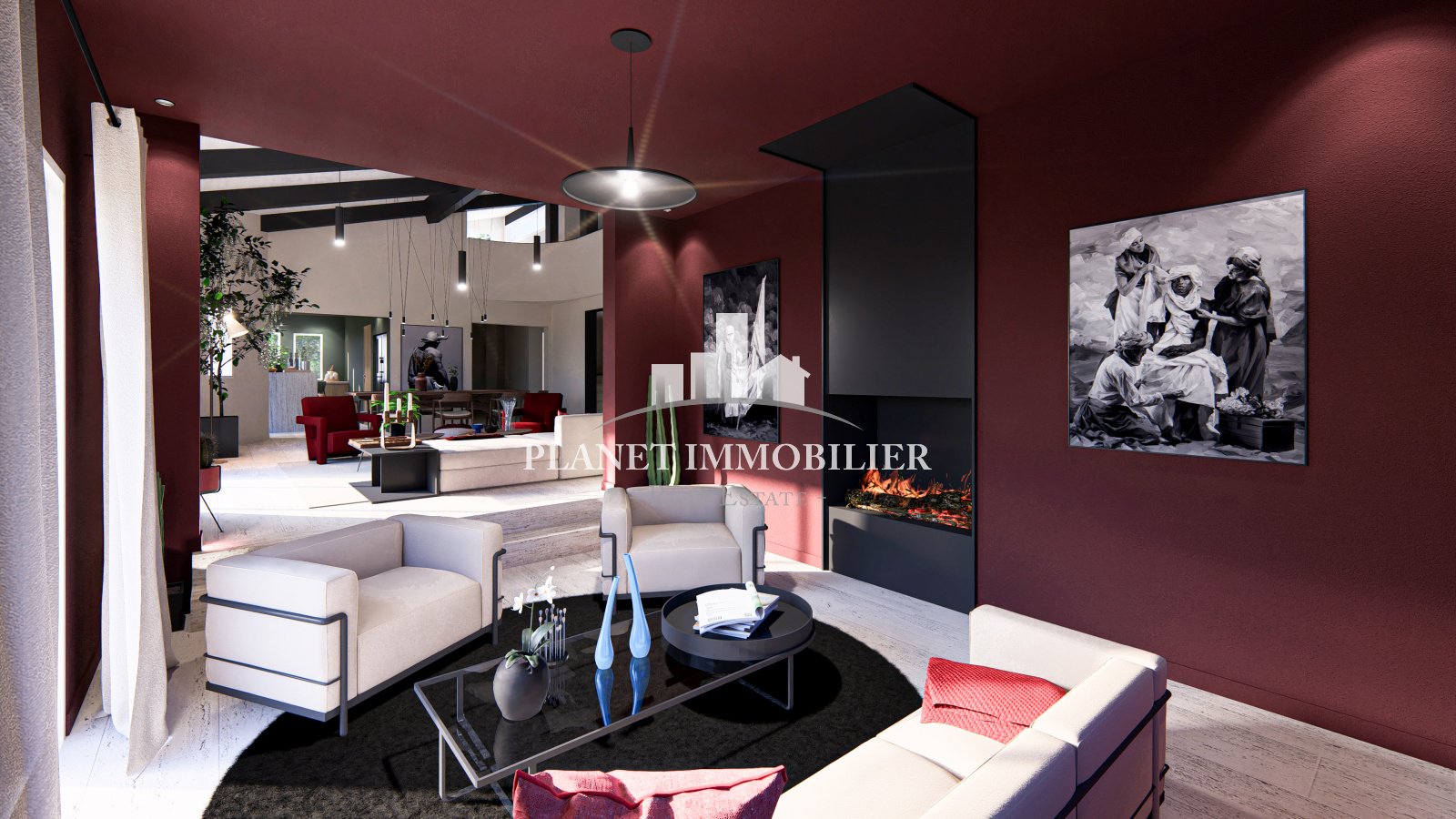 - Un vaste salon / salle à manger baigné de lumière, ouvrant sur une grande terrasse plein sud avec une vue spectaculaire sur la Méditerranée