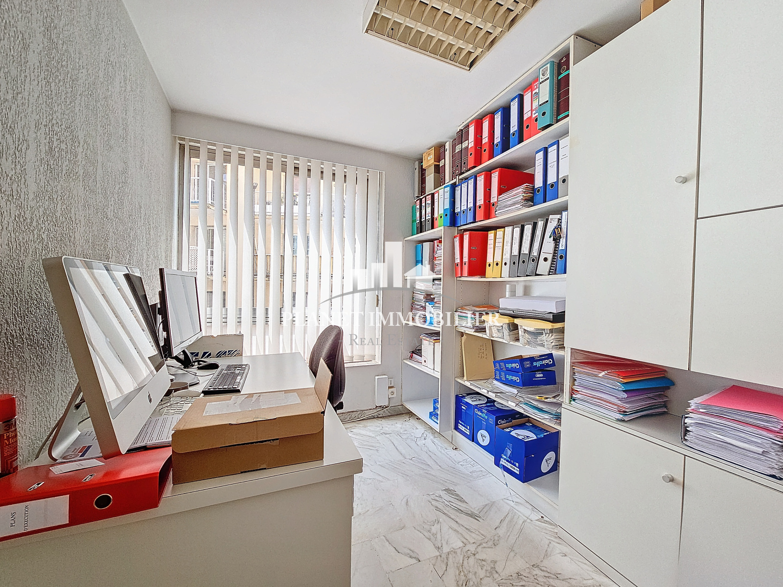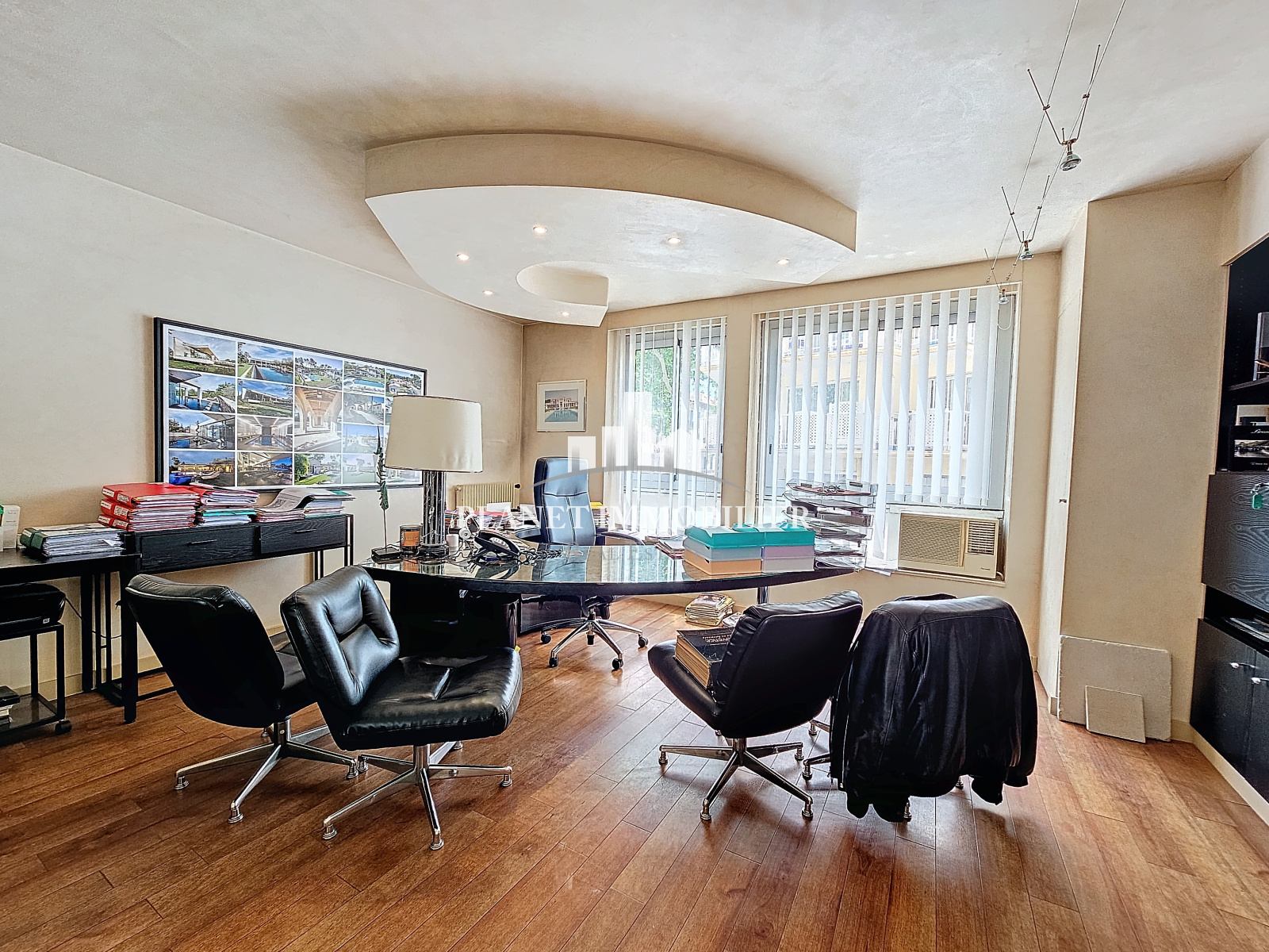 Cannes (06400)Cannes boulevard Carnot, 1 bureau et 1 appartement réunis. Actuellement configuré en bureau d'architecte ils peuvent être à nouveau séparés. Beaucoup de potentiel. Beaux volumes. Ces deux lots sont vendus avec deux caves et un garage en sous-sol. Soumis au régime de copropriété. Chauffage et eau inclus dans les charges.Charges annuelles 5856€ Honoraires compris à la charge du vendeur.